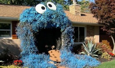 Украшенный к Хэллоуину двор дома стал похож на Cookie Monster из «Улицы Сезам»